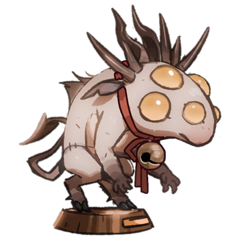 Also better known as the synthetic lamb. The seven-eyed and seven-horned little beast is considered the final shape of impkin, although some argue it's merely an unfortunate deformity. Nevertheless, church scriptures mention the original lamb in the Codex Apocalyptica among the seven plagues.It was created in a test-tube environment and not traditionally fostered by impkin. Unfortunately its creator, Luther Crowell, met his demise at the hands of Treant's church for the heresy of creating the doomsday creature in his private home.